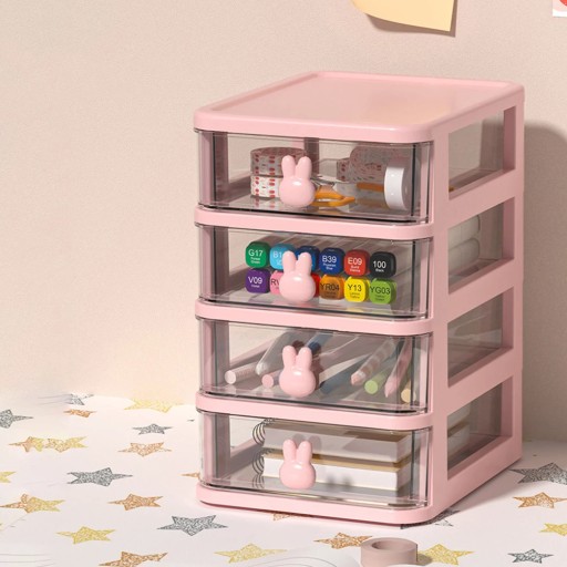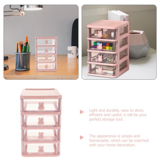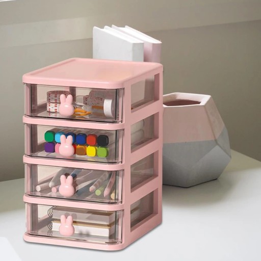 Wielowarstwowy organizer na biurko może być używany do klasyfikowania i przechowywania kosmetyków, artykułów piśmiennych i innych drobiazgów.