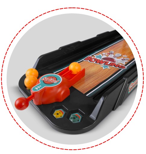 Kręgle po uderzeniu kulą podnoszą się ku górze. Nie da się ich wyjąć, dzięki czemu się nie pogubią.