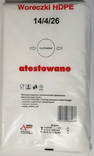 Woreczki foliowe śniadaniowe HDPE 14/4/26 800 szt. Atestowane