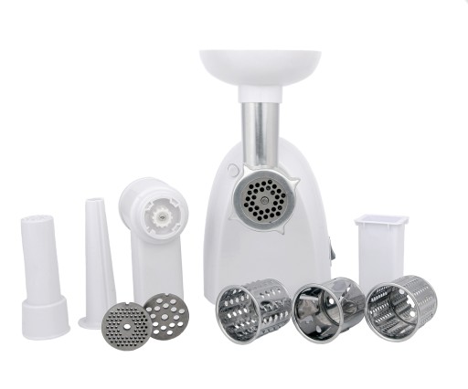 Dla wszystkich tych, którzy chcą przygotować własne kiełbasy i mięsa mielone. Maszynka do mięsa wyposażona w 3 wymienne sitka: do kiełbasy, maku i sitko średnie. W zestawie także nasadka masarska i popychacz. Całość wykona z trwałych materiałów, łatwych do rozmontowania i czyszczenia. Użytkownik ma do wyboru 2 biegi (w przód i rewers). Maszynka korzysta standardowo z mocy 600 W, przy maksimum w granicach 1500 W.