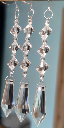 Zawieszka wykonana jest z akrylowych kryształków (szkło akrylowe to tworzywo sztuczne) przezroczystych co daje przepiękny efekt wizualny
