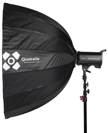 Quadralite Hexadecagon to softbox, który zapewnia bardzo miękkie, a jednocześnie łatwe do kontrolowania światło niezależnie od tego, czy pracujemy w studiu czy w plenerze. Jego szesnastościenny kształt powoduje, że odbicia w oczach fotografowanej osoby są okrągłe i naturalne, co wspaniale sprawdza się podczas sesji portretowych, modowych czy też beauty.