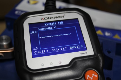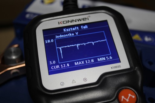 - Test układu ładowania pojazdu: napięcie obciążenia, napięcie nieobciążonego