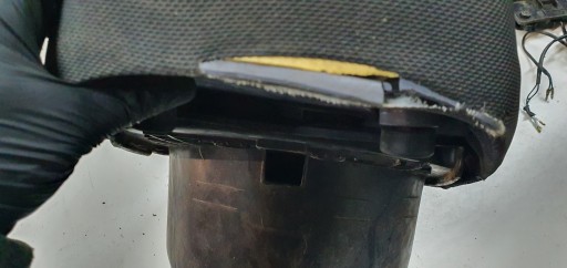 Przedmiot USZKODZONY, siedzenie rozerwane oraz pęknięte, widoczne na zdjęciach.