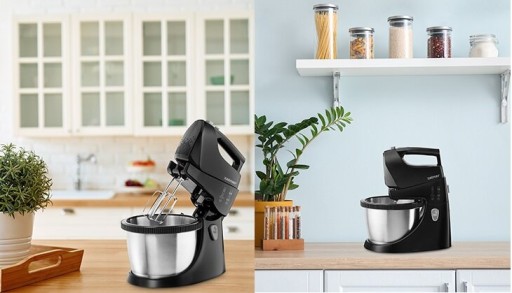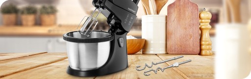 - Wyposażenie: 2 haki do zagniatania ciasta 2 końcówki do mieszania Stojak