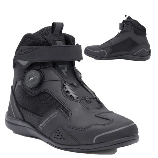 Rebelhorn Spark II to krótkie, miejskie buty motocyklowe ze sportowym charakterem. Mają system szybkiej regulacji i sznurowania ATOP. Ochronę w butach Spark II zapewniają certyfikowane ochraniacze kostek i wzmocnienia na czubku buta oraz pod dźwignię zmiany biegów. Wyposażono je w oddychającą wyściółkę 3D mesh i panele steel mesh.