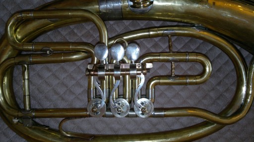 Tenorhorn w stroju ;B'lat 70tych, trzy klapowy, po przeglądzie w super stanie bez luzów, stroi.