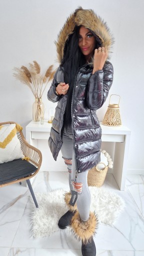 ZIMOWA KURTKA PŁASZCZ LEXUS W POŁYSKU - CZARNA S