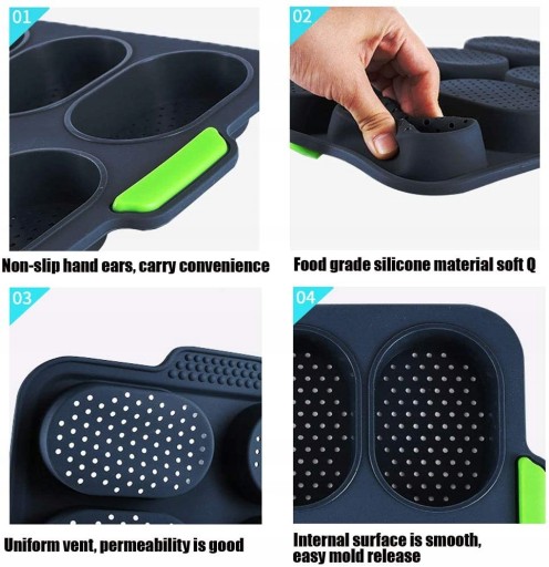 - Funkcja nieprzywierającej patelni: silikonowa taca do pieczenia bagietek jest wystarczająca, aby z wyodrębnić ich zawartość, wystarczy wydobyć ciastka ciśnieniowe przym palcem, naturalnie nieprzywierająca do usunięcia uwolnienia, należy go oczyścić. Pożegnaj na zawsze moczenie i szorowanie mechanicznych naczyń do prania