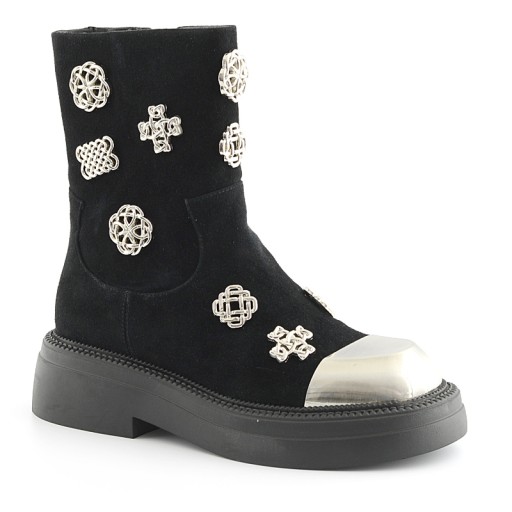 - Botki marki Sca'viola wykonane z wysokogatunkowej skóry naturalnej zamszowej w kolorze czarnym,