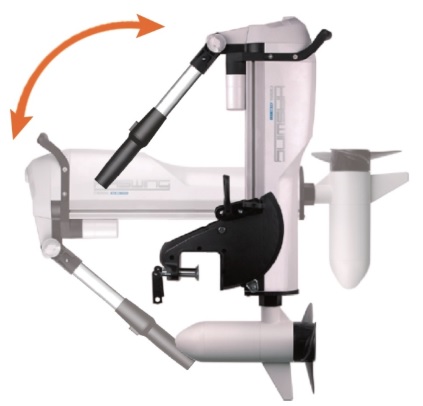 Mechanizm silnika pozwala dodatkowo na regulację całego silnika względem pawęży. Możemy ustawić wysokość w zakresie 22 cm, co powoduje lepsze dopasowanie do pływającej jednostki.