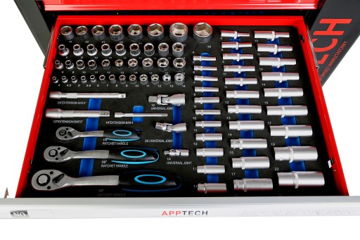 Zestaw 256 elementowy wzmacnianych narzędzi sprawi ,że każda naprawa przebiegnie szybko i sprawnie. Zestawy cechują się wysoką jakością wykonane ze stali wzmocnionej , dzięki czemu klucze ,nasadki będą służyć przez wiele lat bez utraty swoich właściwości