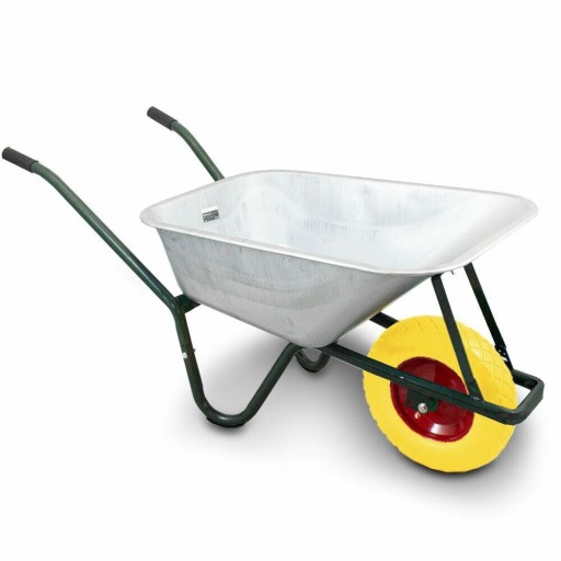 Praktyczna, ocynkowa taczka o pojemności 100L i maksymalnej ładowności 250kg.