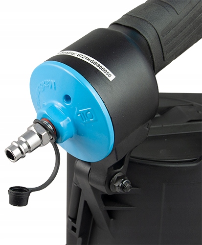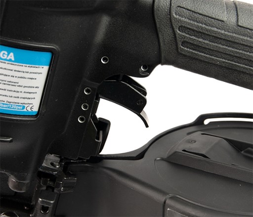 Rękojeść gwoździarki została pokryta antypoślizgową gumą poprawiając tym samym komfort pracy.