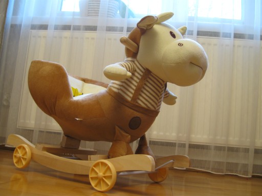 Dla bezpieczeństwa bujak wyposażony jest w fotelik z paskiem zabezpieczającym malucha przed wypadnięciem.