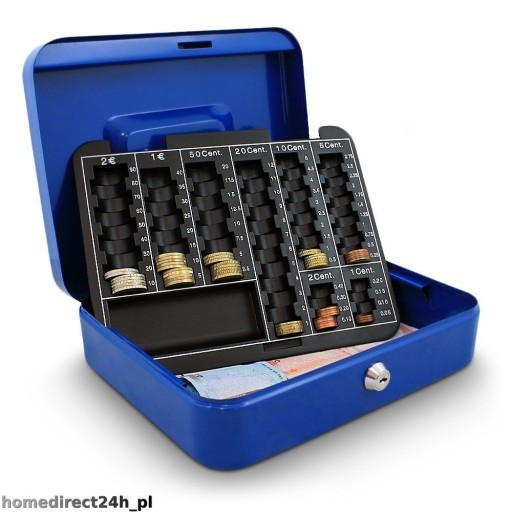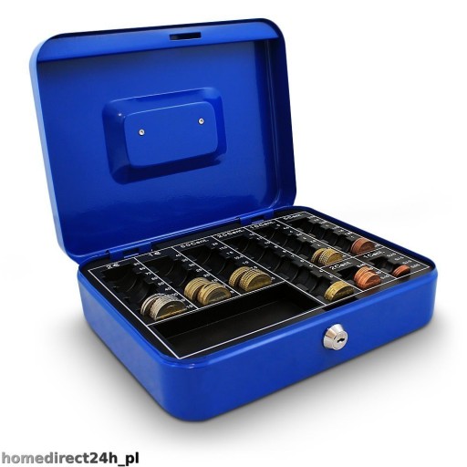 KASETKA NA PIENIĄDZE SEJF METALOWA 25CM NIEBIESKA