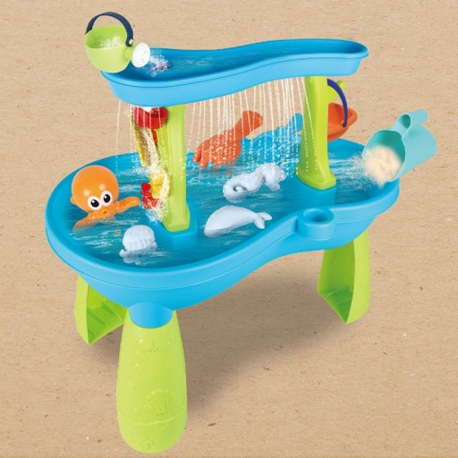 Stół Wodny Ośmiornica od marki WOOPIE jest idealną zabawka do zabawy z wodą i piaskiem. Zestaw zawiera 18 akcesoriów: 3 foremki, ośmiornicę, konewkę, koszyk, pojemnik do nabierania piasku i 2 łopatki. Dziecko może wlewać wodę do górnej części stołu i zobaczyć wodny deszcz oraz jak woda się przemieszcza po wodnych młynkach. Zestaw jest przeznaczony do zabawy w domu, jak i na zewnątrz. Idealne do zabawy w domu i na plaży lub piaskownicy.