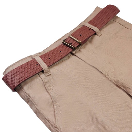 - Spodnie klasyczne beżowe o wizytowym kroju z dwoma kieszeniami z przodu i tyłu spodni