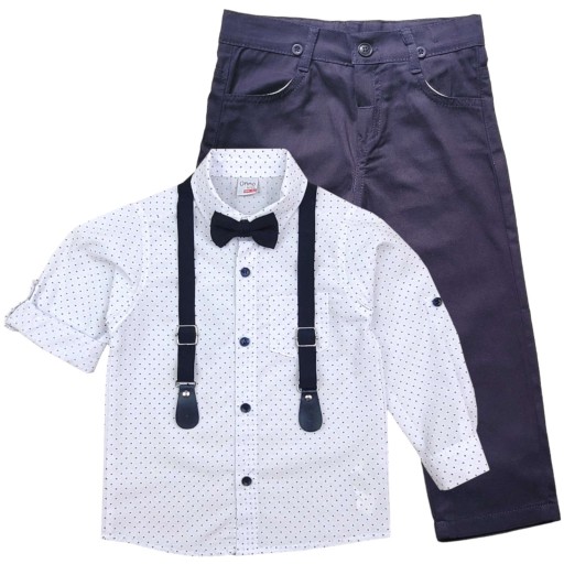 ✅ Komplet składa się z koszuli, spodni, szelek i muszki
