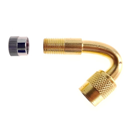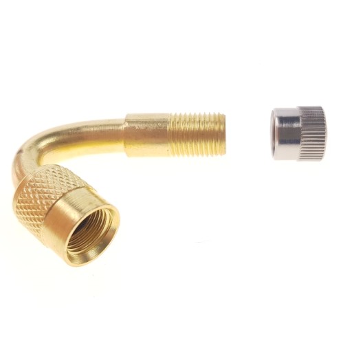 Wygięta pod kątem 45° przedłużka to przydatny dodatek przy pompowaniu zaworów o utrudnionym dostępie np. wentyle bliźniaczych kół w: