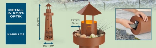 - Możliwość stosowania: Górna platforma dekoracyjnej latarni morskiej zapewnia szerokość ok. 5 cm wystarczająco dużo miejsca do samodzielnego sadzenia roślin. W ten sposób dekoracje morskie można dodatkowo udekorować kwitnącymi kwiatami, fajnymi kaktusami lub małymi roślinami.