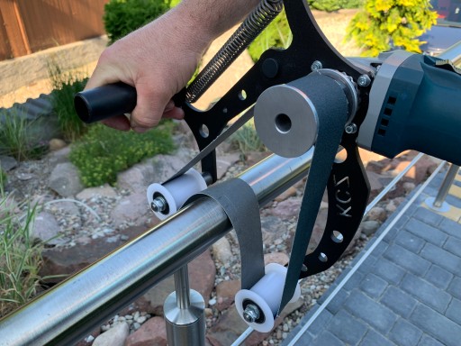 Przystawka służy do szlifowania oraz polerowania rur stalowych, rur ze stali nierdzewnej, prętów metalowych i drewnianych oraz wiele innych w zakresie od fi 20 mm do fi 150 mm.