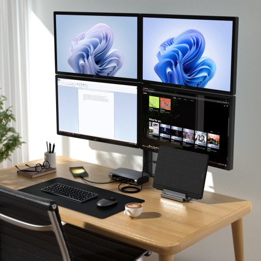 Zwiększ wydajność dzięki elastycznej łączności wyświetlacza. Ta stacja dokująca umożliwia dodanie do czterech ekranów w rozdzielczości 4K 60 Hz, w zależności od możliwości systemowych komputera hosta.