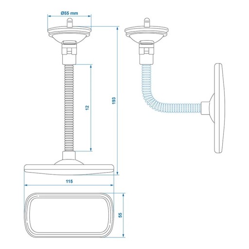 Lusterko wsteczne panoramiczne 115x55mm na przyssawkę, ramię 12cm