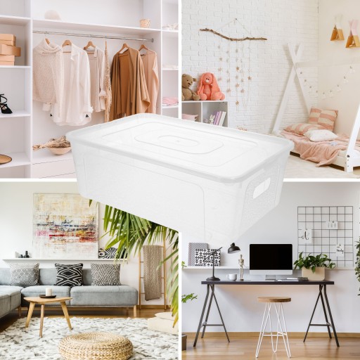 Estetyczny wygląd w kolorze przezroczystym sprawia, że pojemnik pasuje do każdego wnętrza, dodając elegancji i harmonii. Ponadto, przezroczystość pozwala szybko zlokalizować potrzebne przedmioty bez konieczności otwierania pojemnika, co oszczędza czas i ułatwia organizację.