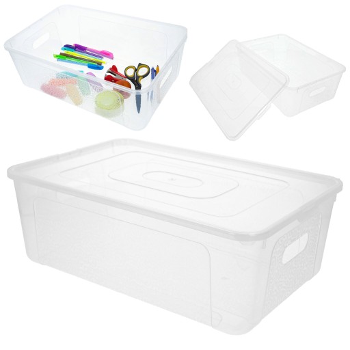 - Pojemnik o pojemności 11 litrów w kolorze przezroczystym z praktyczną pokrywą.