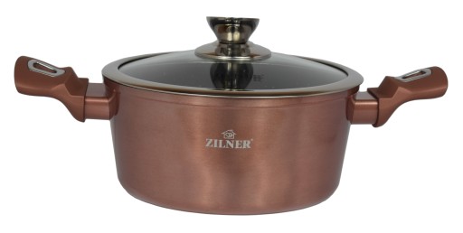 - Komplet garnków i patelni ZILNER 8552 pokrytych ceramiczną marmurową powłoką nieprzywierającą (8 elementów).