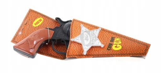 Pistolet wykonany z plastiku. Po naciśnięciu spustu wydaję dźwięk strzału. Kolor: czarny. Wymiary: 19x8cm