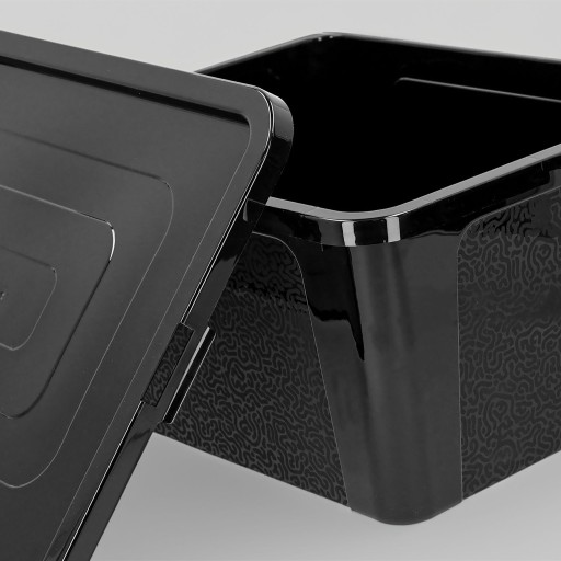 Estetyczny wygląd w kolorze czarnego połysku sprawia, że pojemnik pasuje do każdego wnętrza, dodając elegancji i harmonii. Ponadto, czarny kolor może również pomagać w ukryciu ewentualnych zabrudzeń, co sprawia, że pojemnik jest łatwy w utrzymaniu czystości.