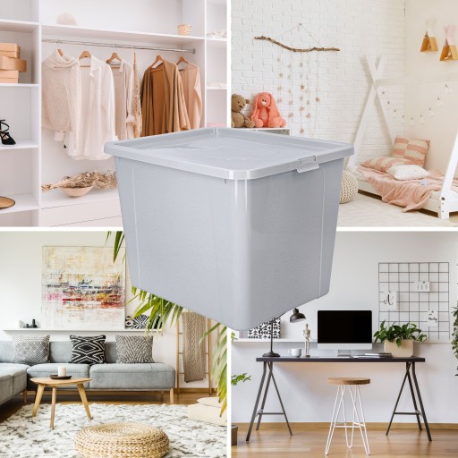 Pudło do przechowywania pudełko pojemniki plastikowe na zabawki szare 30l
