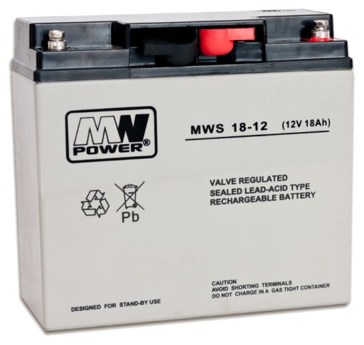 Akumulator MWPower MWS 18-12 dedykowany jest do systemów alarmowych, kontroli dostępu, systemów przeciwpożarowych (zasilanie awaryjne), kas fiskalnych, central telefonicznych, oświetlenia awaryjnego, automatyki itp. Jest to bezobsługowy akumulator VRLA (Valve Regulated Lead Acid czyli z samoregulującymi zaworami bezpieczeństwa i wewnętrzną rekombinacją gazów) z elektrolitem uwięzionym w separatorze z maty szklanej AGM (ang. Absorbent Glass Mat), potocznie żelowy.
