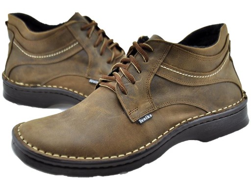 Buty został wykonany z wytrzymałej skóry naturalnej.