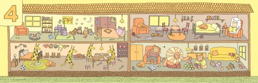 Ale tu tłoczno! Gdzie nie spojrzeć, aż roi się od postaci, przedmiotów i zwierząt. Czy zdołasz je policzyć? Zobacz, ile głów ma smok mieszkający w podziemiach, ile samolotów stoi na lotnisku i ile skarpetek fruwa w przestrzeni kosmicznej! Sprawdź, których postaci, zwierząt lub rzeczy jest tyle, ile wskazuje cyfra w lewym górnym rogu ilustracji. Czy uda ci się odnaleźć wszystkie?
