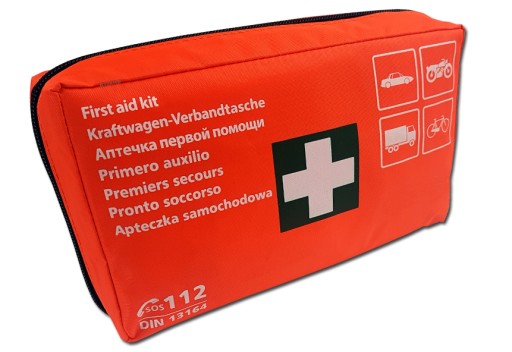 Apteczki samochodowe do udzielania pierwszej pomocy zawierają opakowanie z tkaniny w wodoodpornej. Dzięki temu można skorzystać z niej w dowolnym miejscu w różnych warunkach. Zawiera najpotrzebniejsze środki opatrunkowe, niezbędne w podróży.