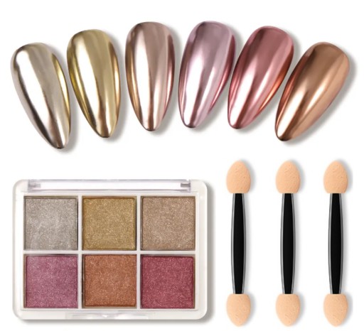 КАССЕТА ПОРОШКА ДЛЯ НОГТЕЙ С ЗЕРКАЛЬНЫМ ЭФФЕКТОМ, 6 ЦВЕТОВ