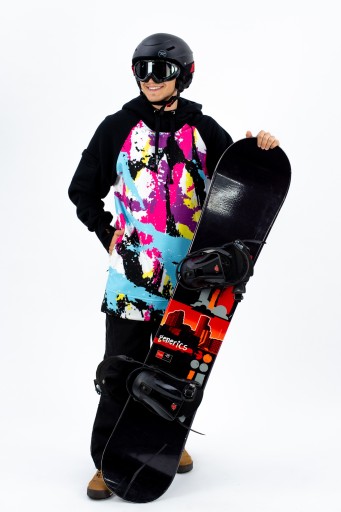 Sportowy szyk i luz na stoku. Wybierz naszą niesamowitą bluzę Snowboardową! Kolorowe wzory zgrywają się na elementach tworząc niesamowity efekt. Doskonałej jakości materiał, zapewni Ci ciepło i komfort, a odjechany wzór wyróżni Cię na stoku! Specjalny krój sprawi, ochroni Cię przed śniegiem w niechcianych miejscach.