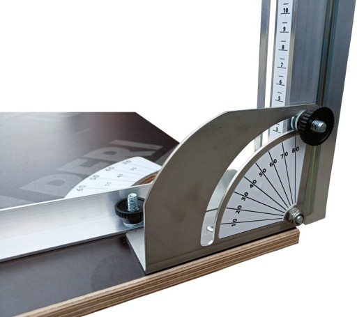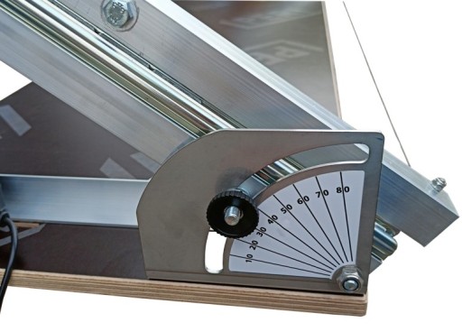 Prowadnice posiadają łożyska zwiększające płynność ich pracy. Kąt cięcia można ustawić w zakresie 0-90°. Wysokość (grubość) cięcia to 26cm. Blat wyposażony jest w miarkę metryczną służącą do dokładnego docinania materiału.