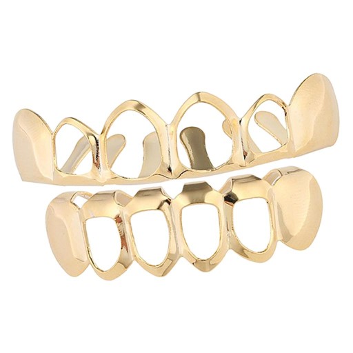 18k otwartych pustych 6 kłów zestaw grilli do zębów górnych i dolnych