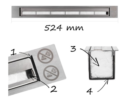 ☝Palenisko wykonane ze stali nierdzewnej szczotkowanej o pojemności całkowitej około 0,7 litra i szerokości 524 mm