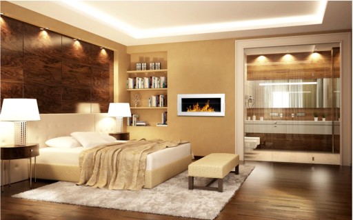 Биокамин с подвесным стеклом 900х400, белый глянец