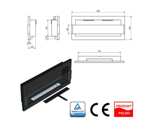 ✔️ Polskiej produkcji biokominek do zawieszenia na ścianie. Nadaje się także do zabudowy w ścianie (istniejącym otworze) lub do montażu w zabudowie (także wykonanej z płyt G-K).