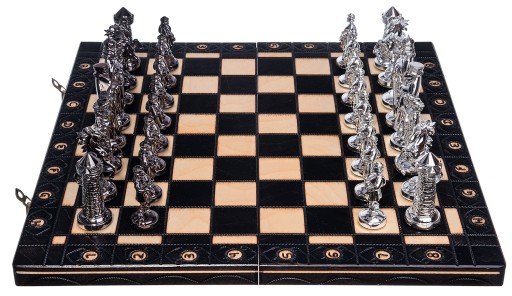 Szachy Średniowieczne metalizowane srebrno-czarne