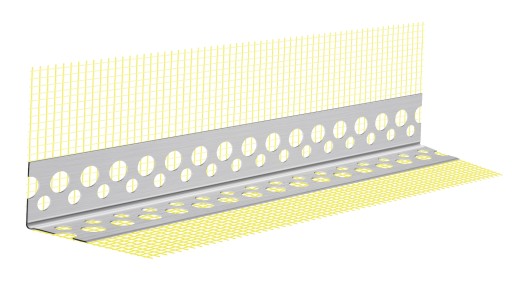 Narożnik z siatką wykorzystywany jest do wykonywania wykończenia i zabezpieczenia krawędzi elewacji. Pozwala dzięki temu wyprowadzić kąty docieplanego budynku.