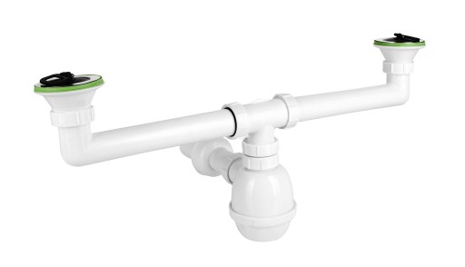 СИФОН ДЛЯ МОЙКИ НА 2 КОРЗИНЫ С АЛМАЗНОЙ ПРОБКОЙ