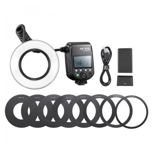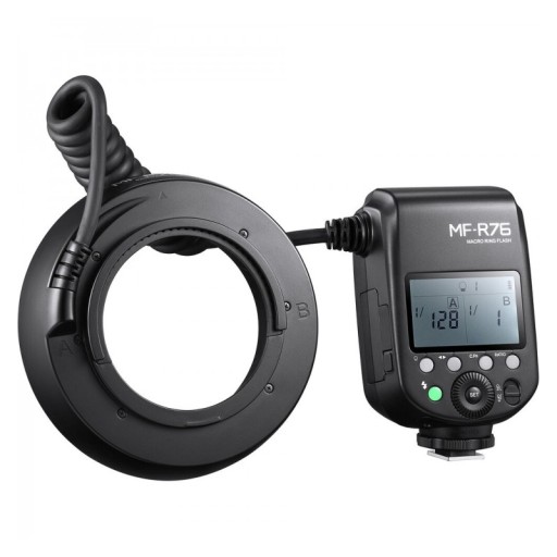 Lampa Godox Macro MF-R76 jest kompatybilna z aparatami Canon, Nikon, Sony, Panasonic, Olympus, Fuji i Pentax. MF-R76 Macro Ring Flash oświetla obiekt miękkim i równomiernym światłem, które jest idealne do podkreślania szczegółów małych obiektów.