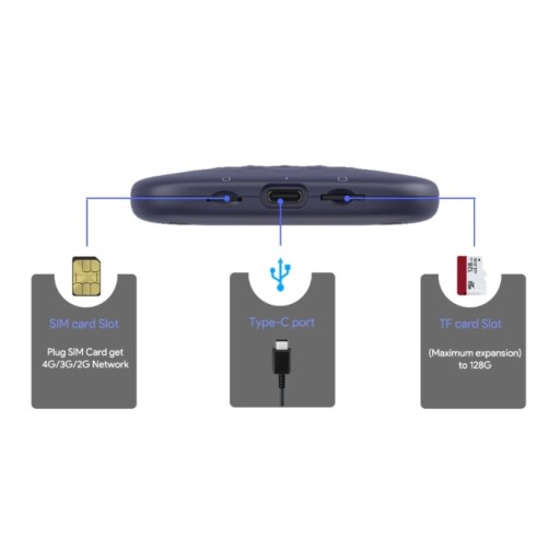 Obsługuje karty SIM/TF, wbudowany moduł 4G Full Netcom dla sieci, a także może korzystać z hotspotu Wi-Fi telefonu do tworzenia sieci.